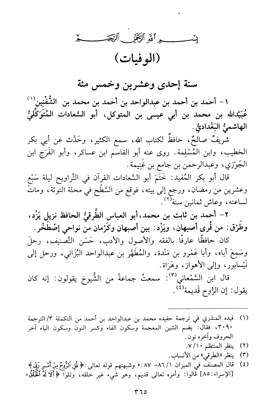 1 - أحمد بن أحمد بن عبد الواحد بن أحمد بن محمد بن الشفنين عُبَيْد الله بن محمد بن أبي عيسي بن المتوكل، أبو السّعادات المتوكّليّ الهاشميّ البغدادي. [المتوفى: 521 هـ]