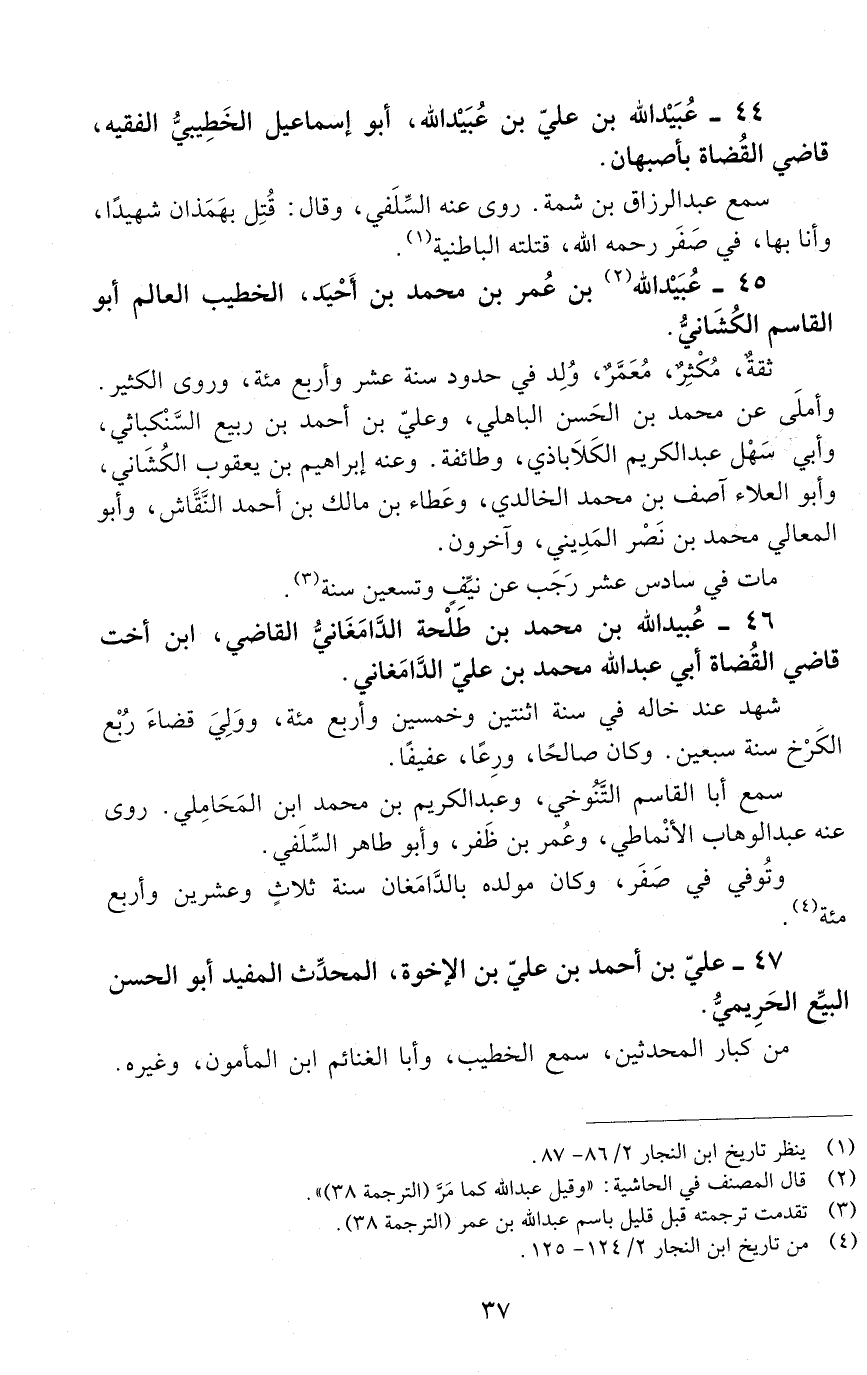45 - عُبَيْد الله بْن عُمَر بْن محمد بْن أَحْيَد، الخطيب، العالم، أبو القاسم الكُشانيّ. [المتوفى: 502 هـ]