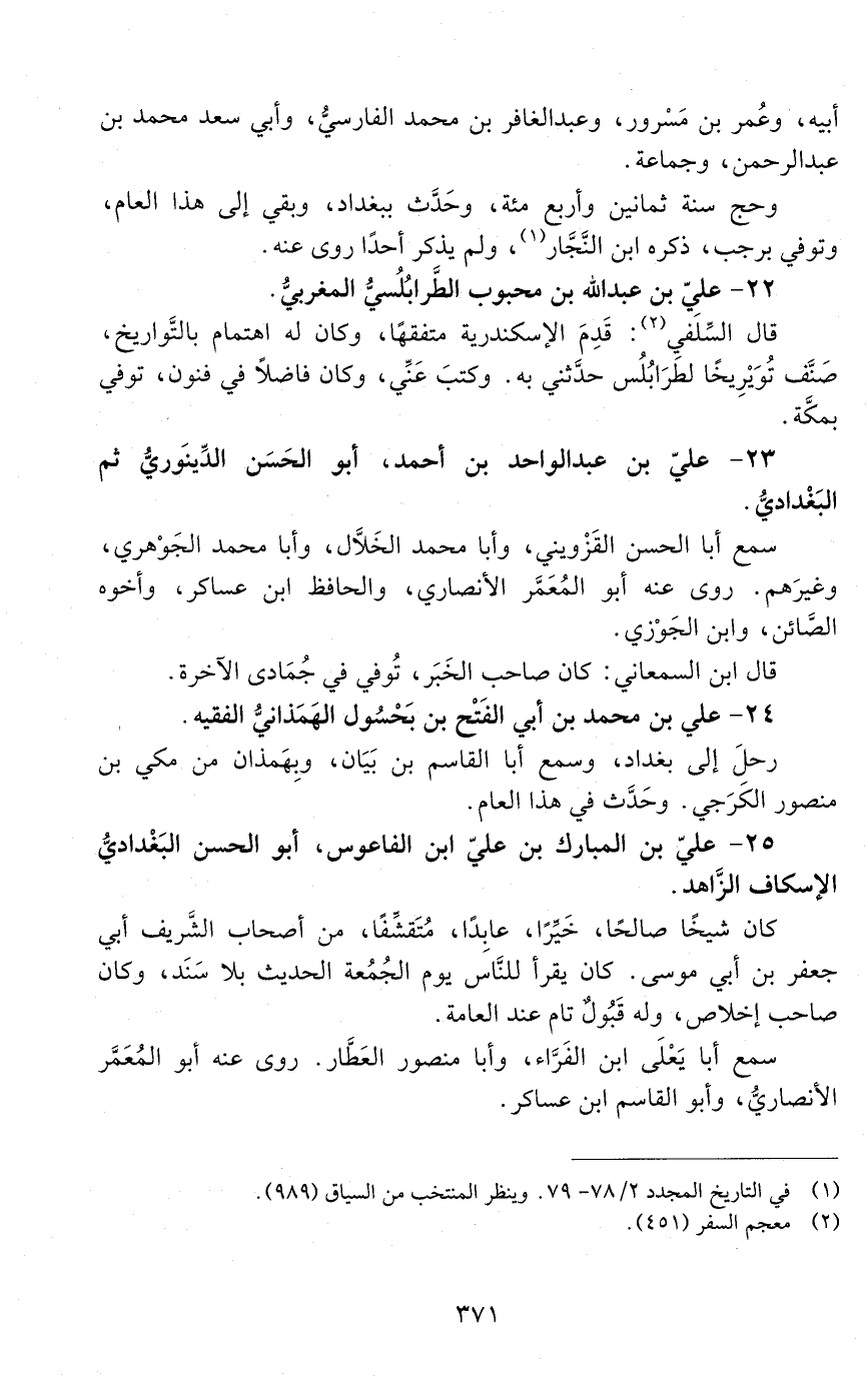 25 - علي بن المبارك بن علي ابن الفاعوس، أبو الحسن البغدادي، الإسكاف، الزّاهد. [المتوفى: 521 هـ]