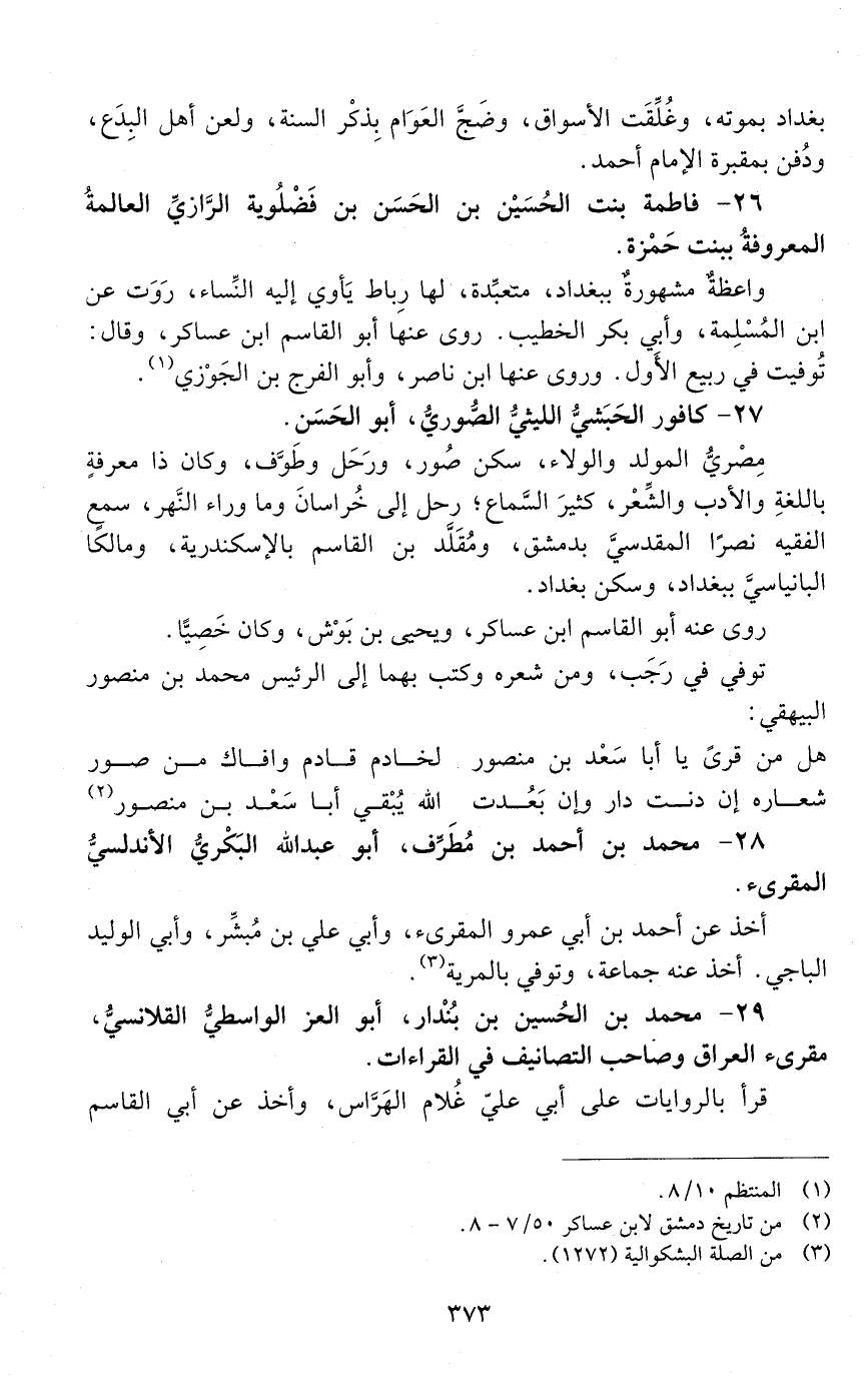 26 - فاطمة بنت الحسين بن الحسن بن فضلُوَيْه الرازي، العالمة المعروفة ببنت حمزة. [المتوفى: 521 هـ]