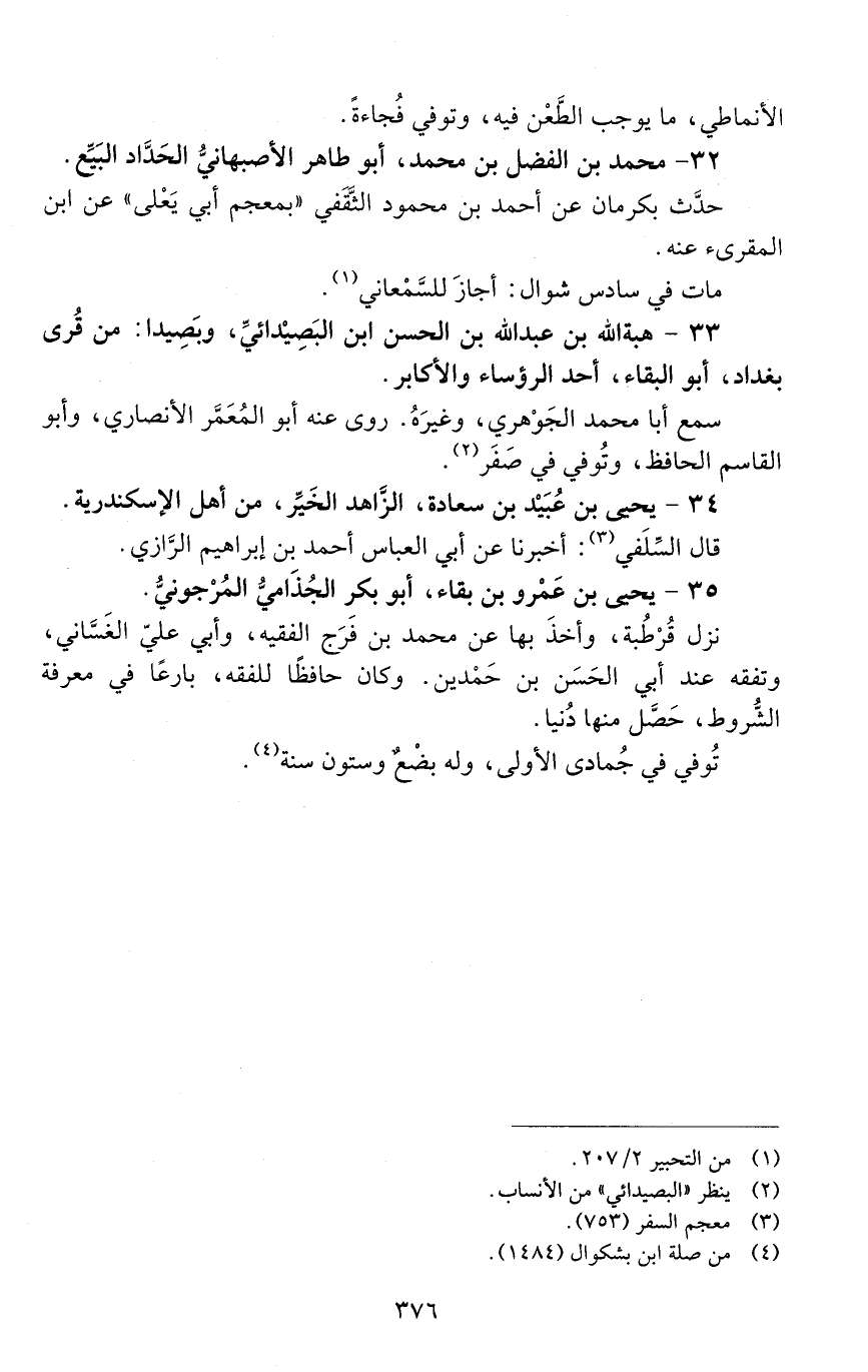 33 - هبة الله بن عبد الله بن الحسن ابن البصيدائي، وبصيدا: من قرى بغداد، أبو البقاء، [المتوفى: 521 هـ]