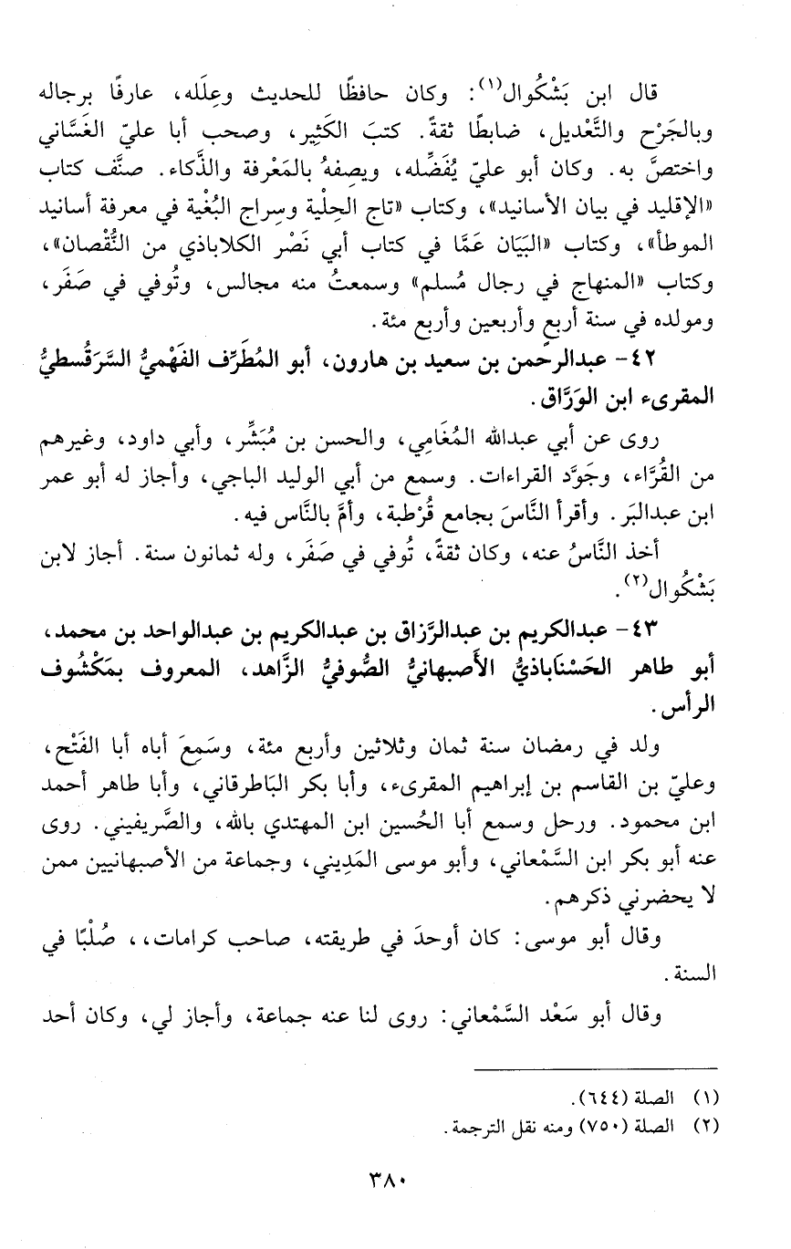 43 - عبد الكريم بن عبد الرَّزاق بن عبد الكريم بن عبد الواحد بن محمد، أبو طاهر الحسناباذيُّ الأصبهانيُّ الصُّوفيُّ، الزاهد، المعروف بمكشوف الرأس. [المتوفى: 522 هـ]
