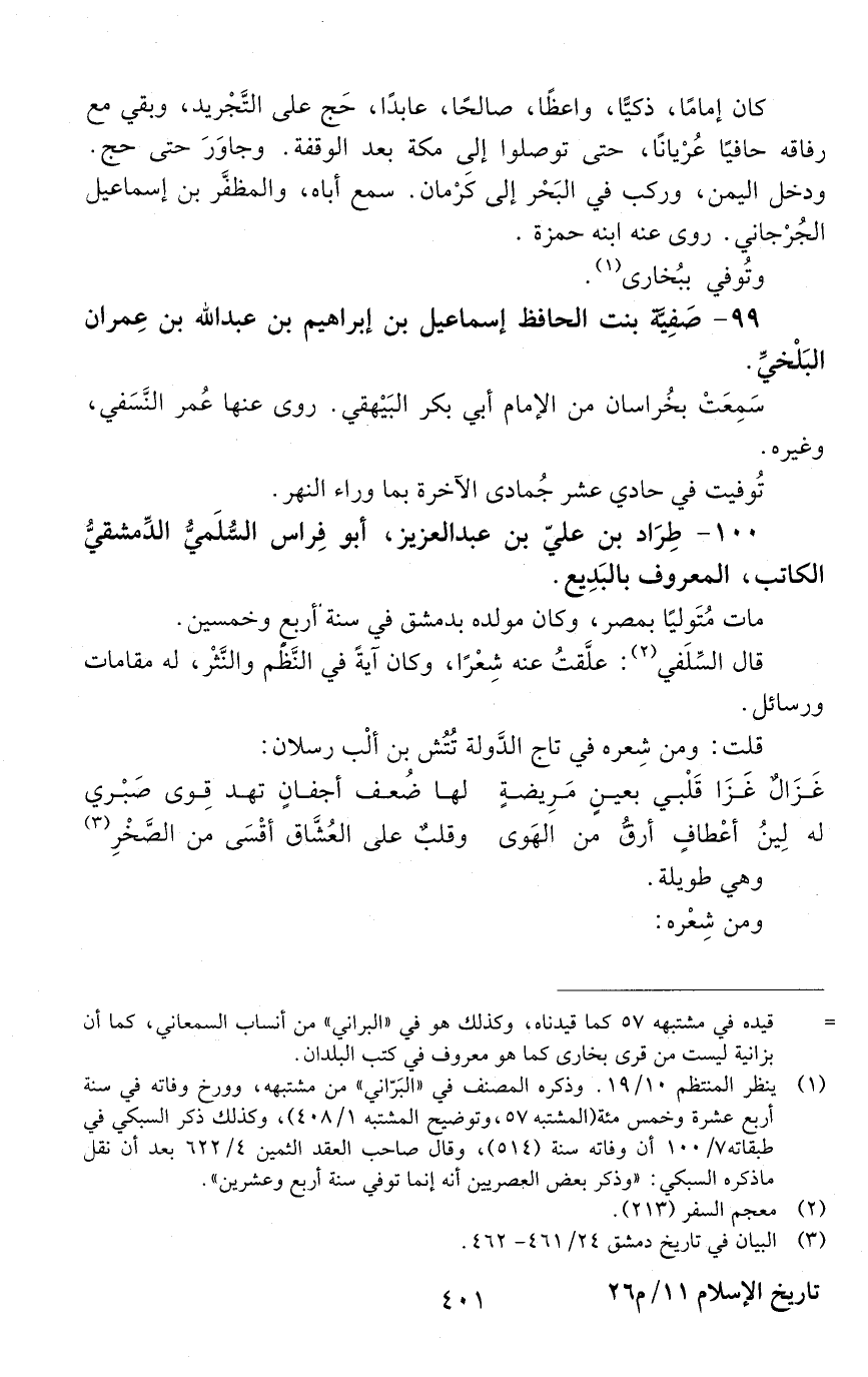 99 - صفية بنت الحافظ إسماعيل بن إبراهيم بن عبد الله بن عمران البلخي. [المتوفى: 524 هـ]