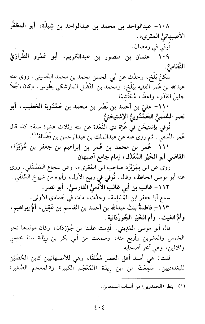 110 - عليّ بن أحمد بن نصر بن محمد بن حمدويه الخطيب، أبو نصر السُّلميُّ الحمدوييُّ الإشتيخنيُّ. [المتوفى: 524 هـ]