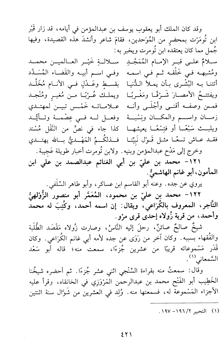 121 - محمد بن علي بن أبي الغنائم عبد الصمد بن علي ابن المأمون، أبو غانم الهاشميّ. [المتوفى: 524 هـ]