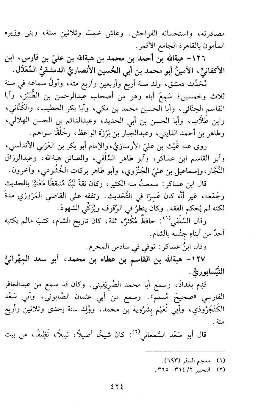 127 - هبة الله بن القاسم بن عطاء بن محمد، أبو سعد المِهْرانيّ النَّيْسابوريّ. [المتوفى: 524 هـ]
