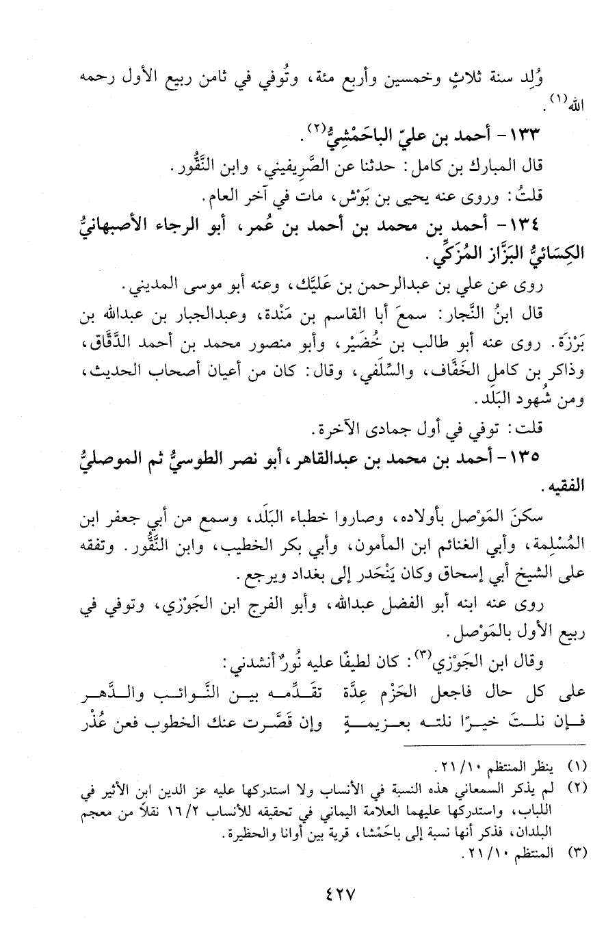 135 - أحمد بن محمد بن عبد القاهر، أبو نصر الطوسيُّ ثم الموصليُّ الفقيه. [المتوفى: 525 هـ]