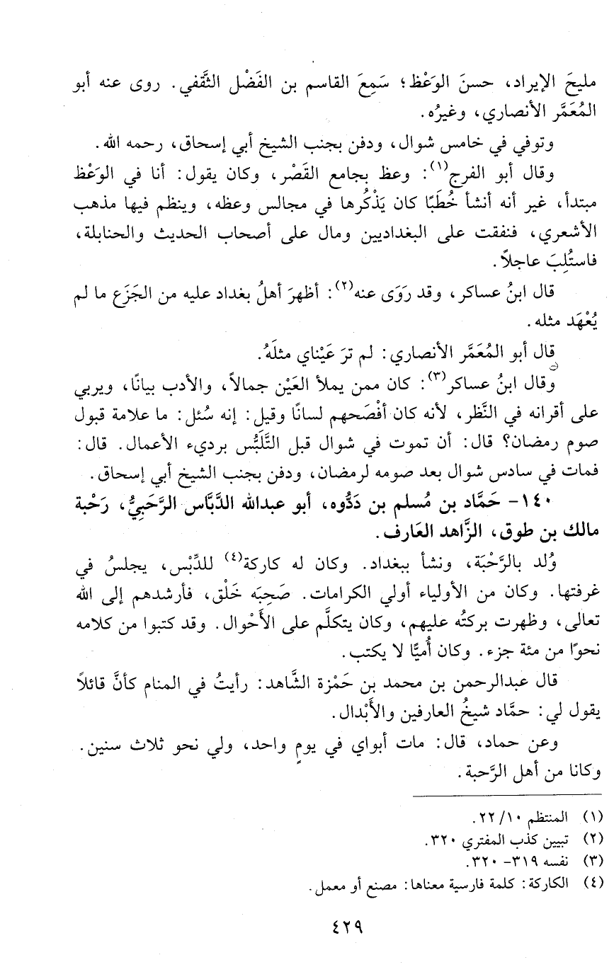 140 - حماد بن مسلم بن ددوه، أبو عبد الله الدباس الرّحْبيّ، رحبة مالك بن طَوْق، الزّاهد العارف. [المتوفى: 525 هـ]