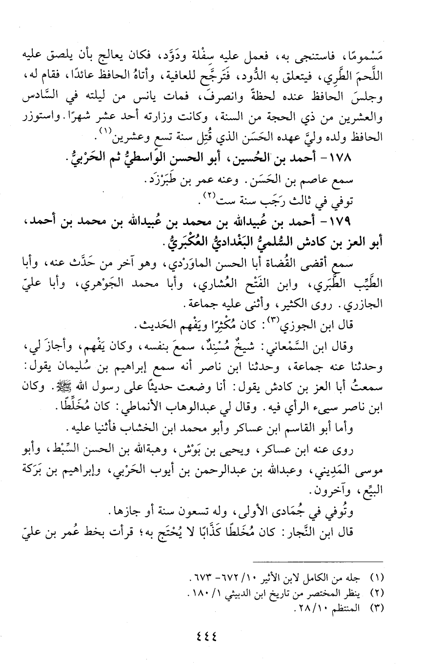 179 - أحمد بن عُبَيْد الله بن محمد بن عُبَيْد الله بن محمد بن أحمد، أبو العزّ بن كادش، السُّلَمي البغداديّ العُكْبَرِيّ. [المتوفى: 526 هـ]