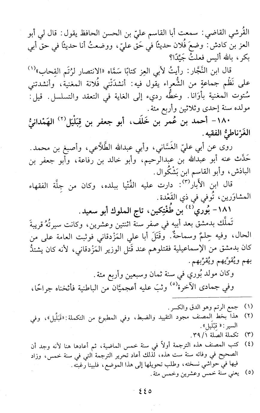180 - أحمد بن عمر بن خَلَف، أبو جعفر بن قِبْلَيْل الهَمْدانيّ، الغَرْناطيّ، الفقيه. [المتوفى: 526 هـ]
