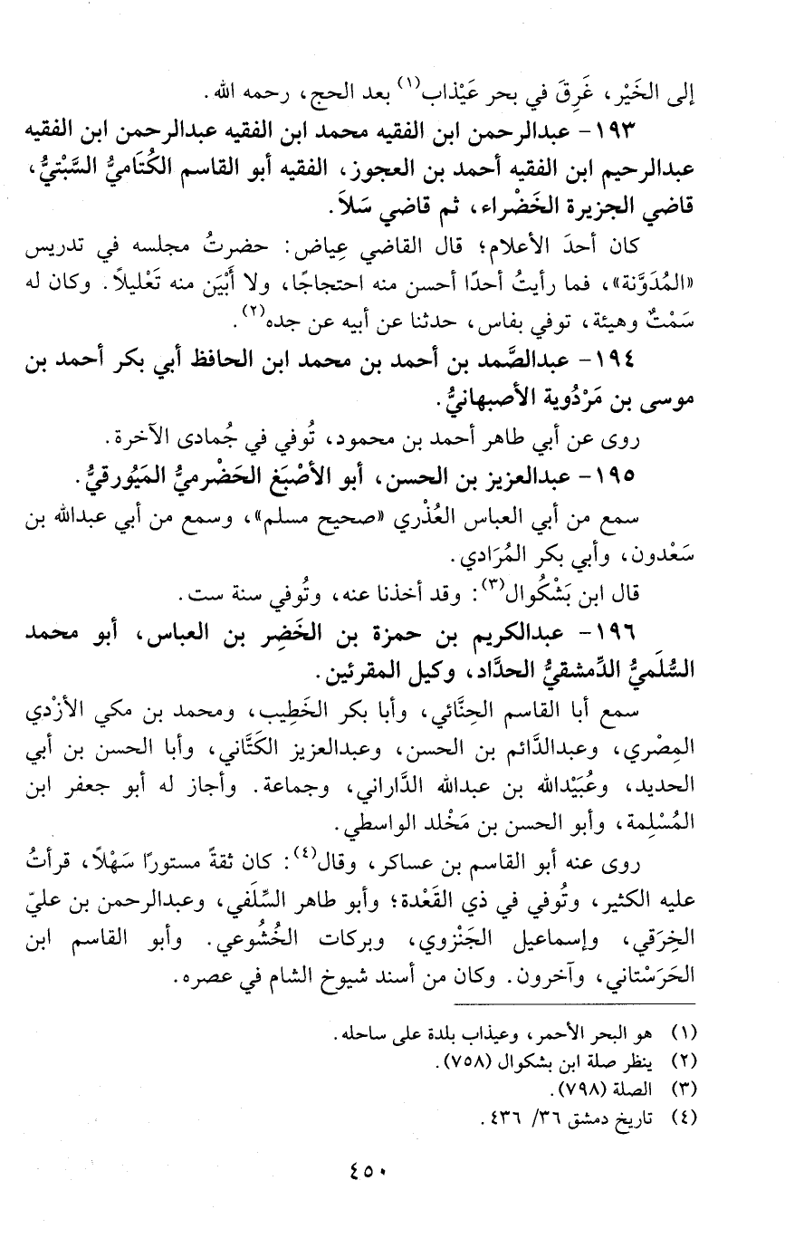 196 - عبد الكريم بن حمزة بن الخضر بن العباس، أبو محمد السلمي الدمشقي الحداد، [المتوفى: 526 هـ]