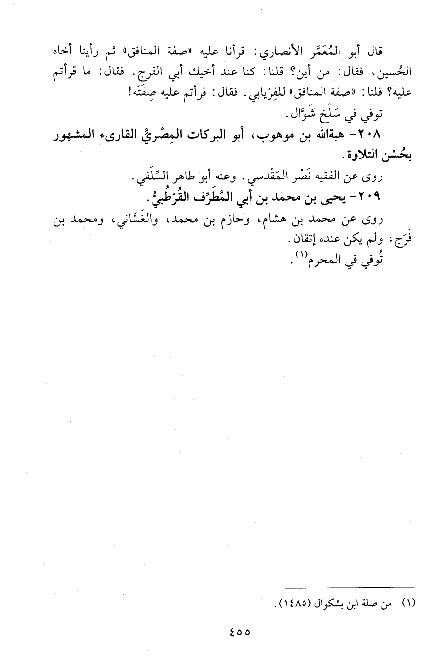 208 - هبة الله بن موهوب، أبو البركات المِصْريُّ القارئ [المتوفى: 526 هـ]