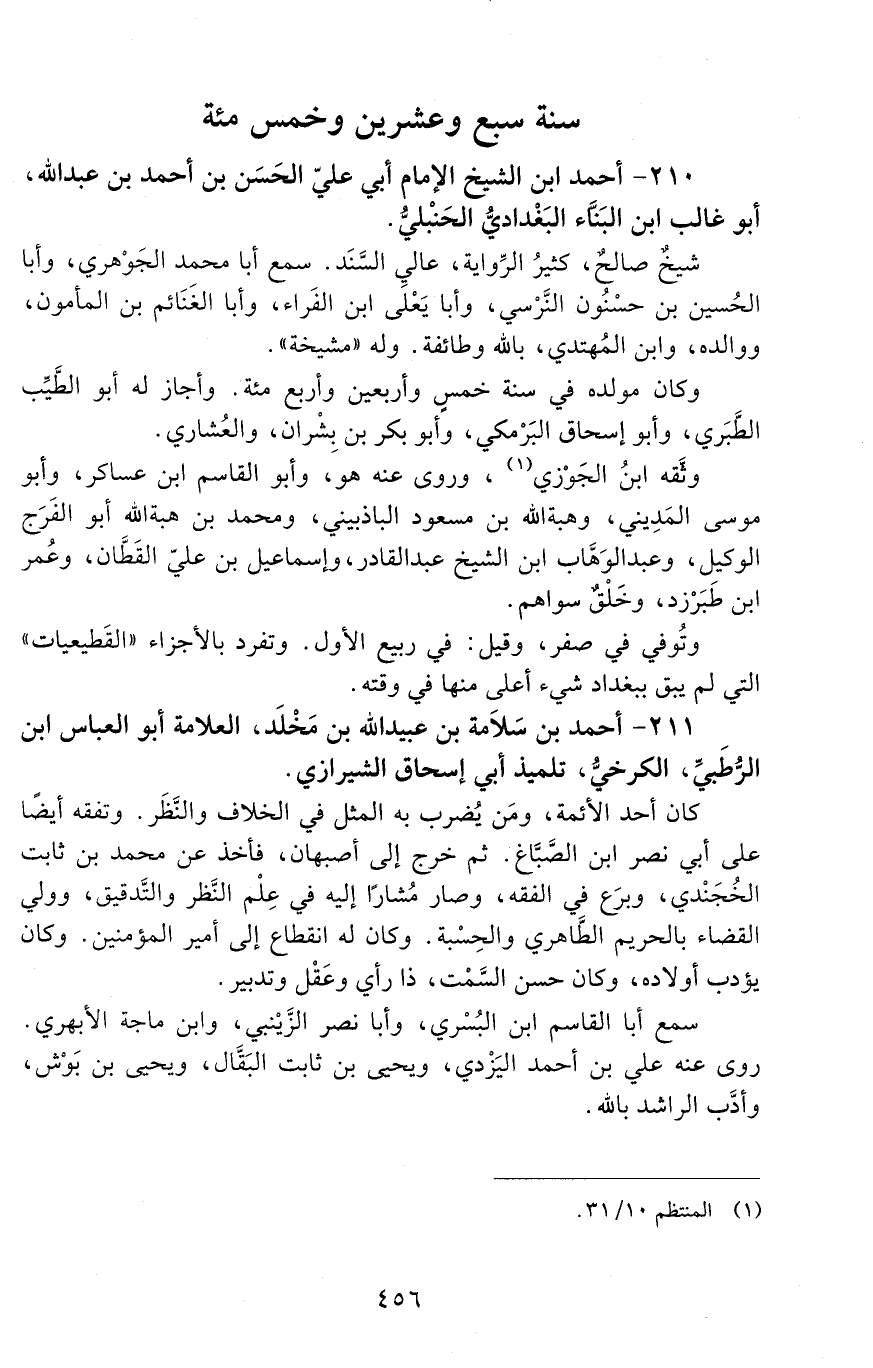 210 - أحمد ابن الشَيخ الإمام أبي عليّ الحسن بن أحمد بن عبد الله، أبو غالب ابن البناء البغداديّ الحنبليّ. [المتوفى: 527 هـ]