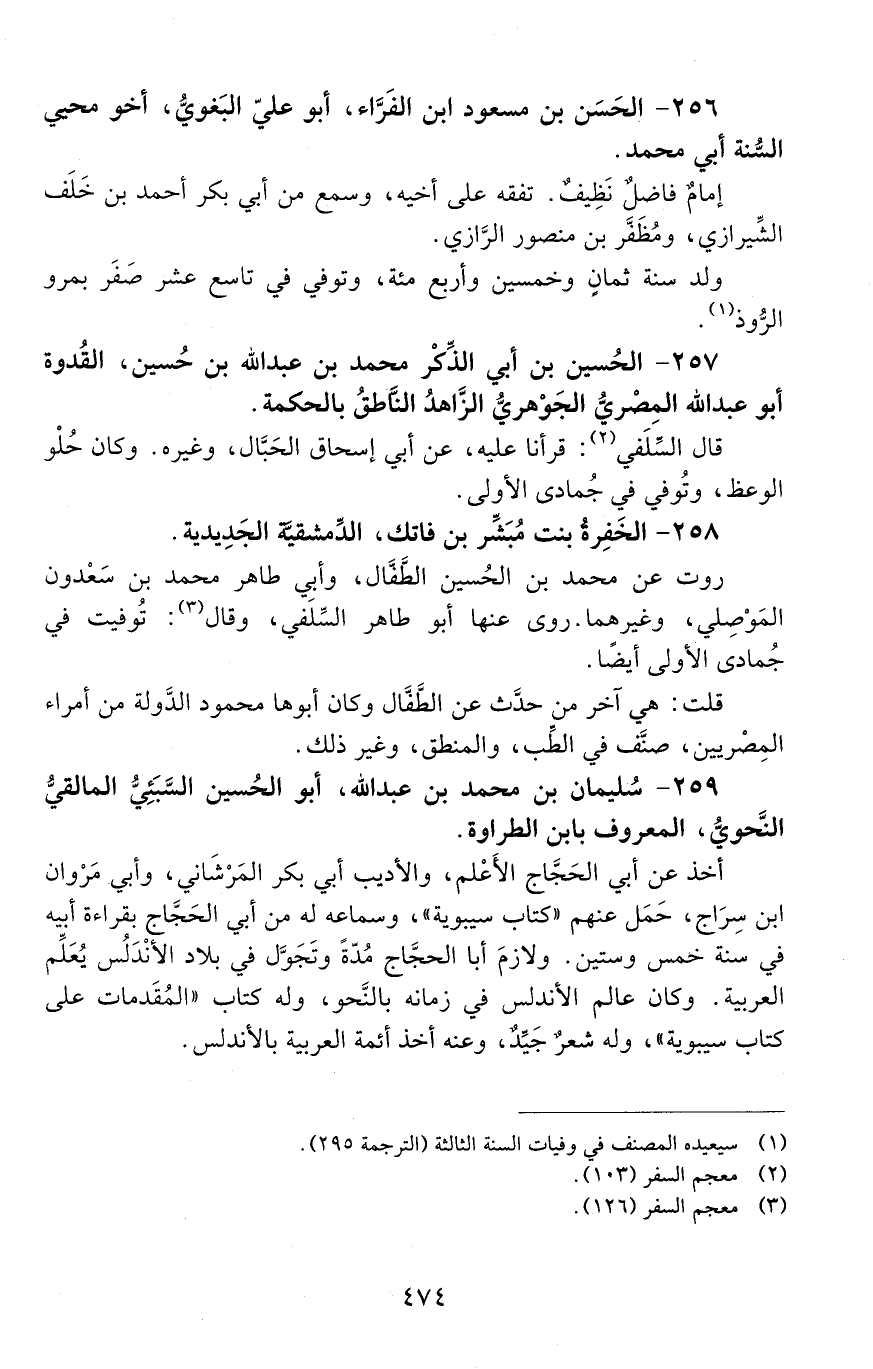 256 - الحسن بن مسعود ابن الفرَّاء، أبو عليّ البغويُّ، [المتوفى: 528 هـ]