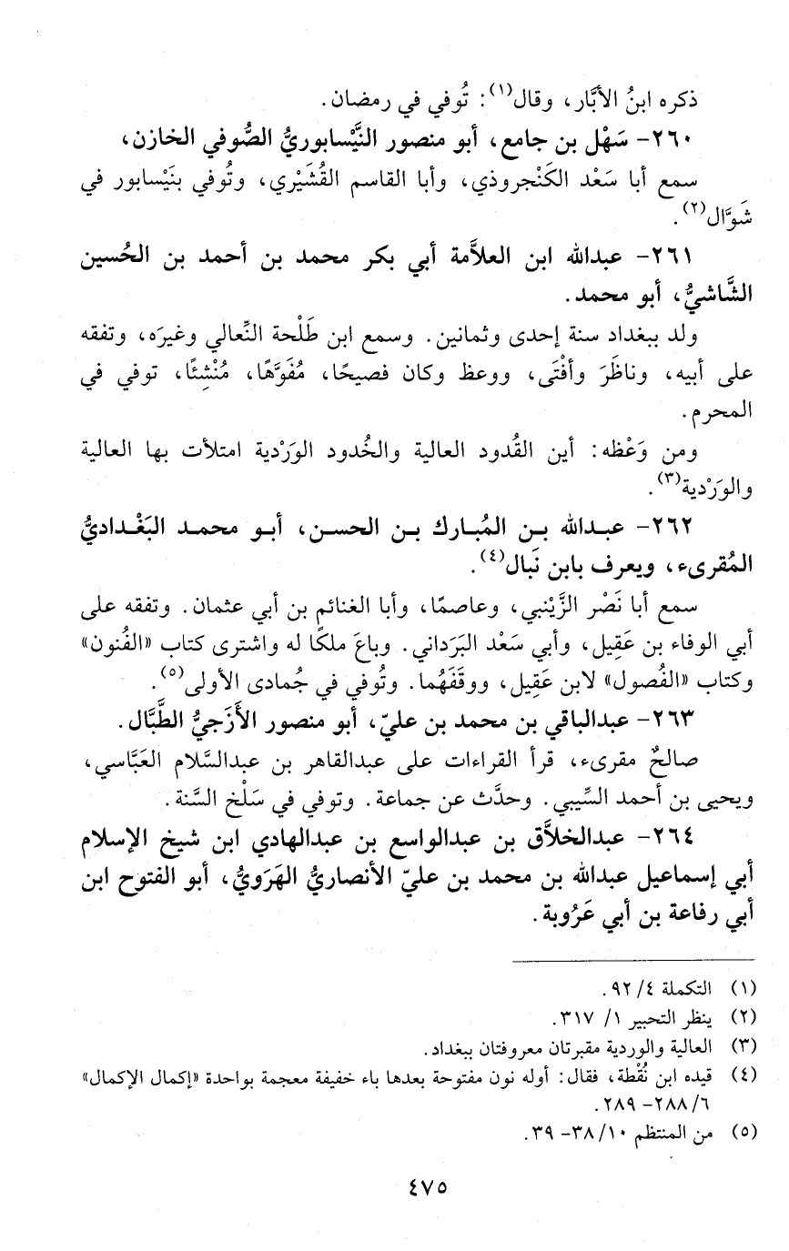 264 - عبد الخلّاق بن عبد الواسع بن عبد الهادي ابن شيخ الإسلام أبي إسماعيل عبد الله بن محمد بن عليّ، الأنصاريّ الهَرَويّ، أبو الفتوح ابن أبي رفاعة بن أبي عروبة. [المتوفى: 528 هـ]-[476]-