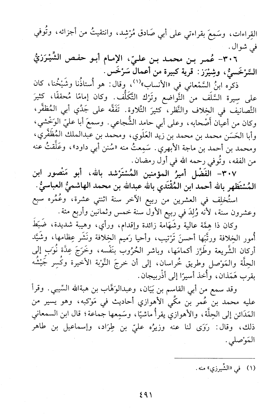 306 - عُمر بْن محمد بْن عليّ، الإمام أبو حفص الشِّيرزيُّ السَّرْخسيُّ، [المتوفى: 529 هـ]
