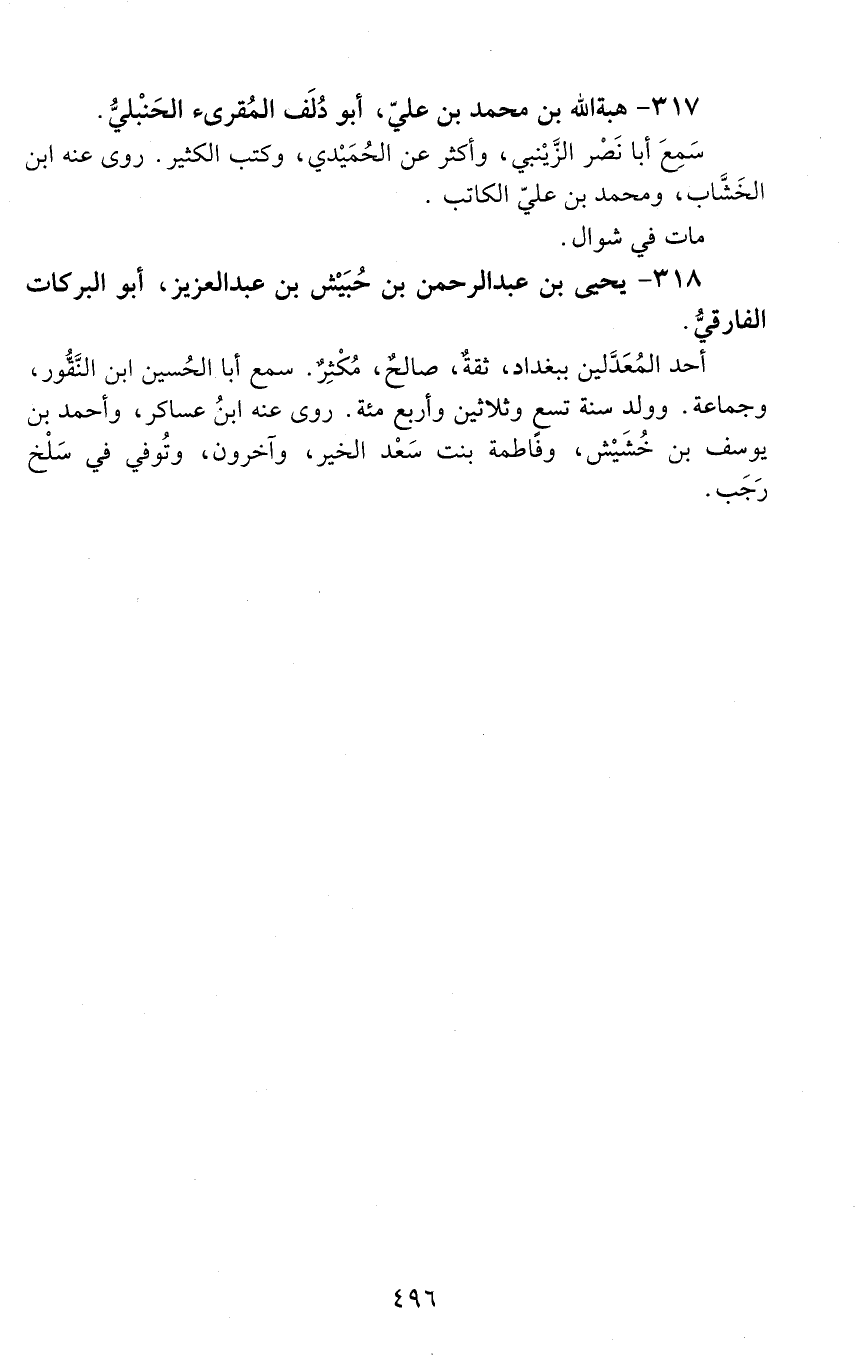 318 - يحيى بن عبد الرحمن بن حُبَيْش بن عبد العزيز، أبو البركات الفارقيُّ. [المتوفى: 529 هـ]