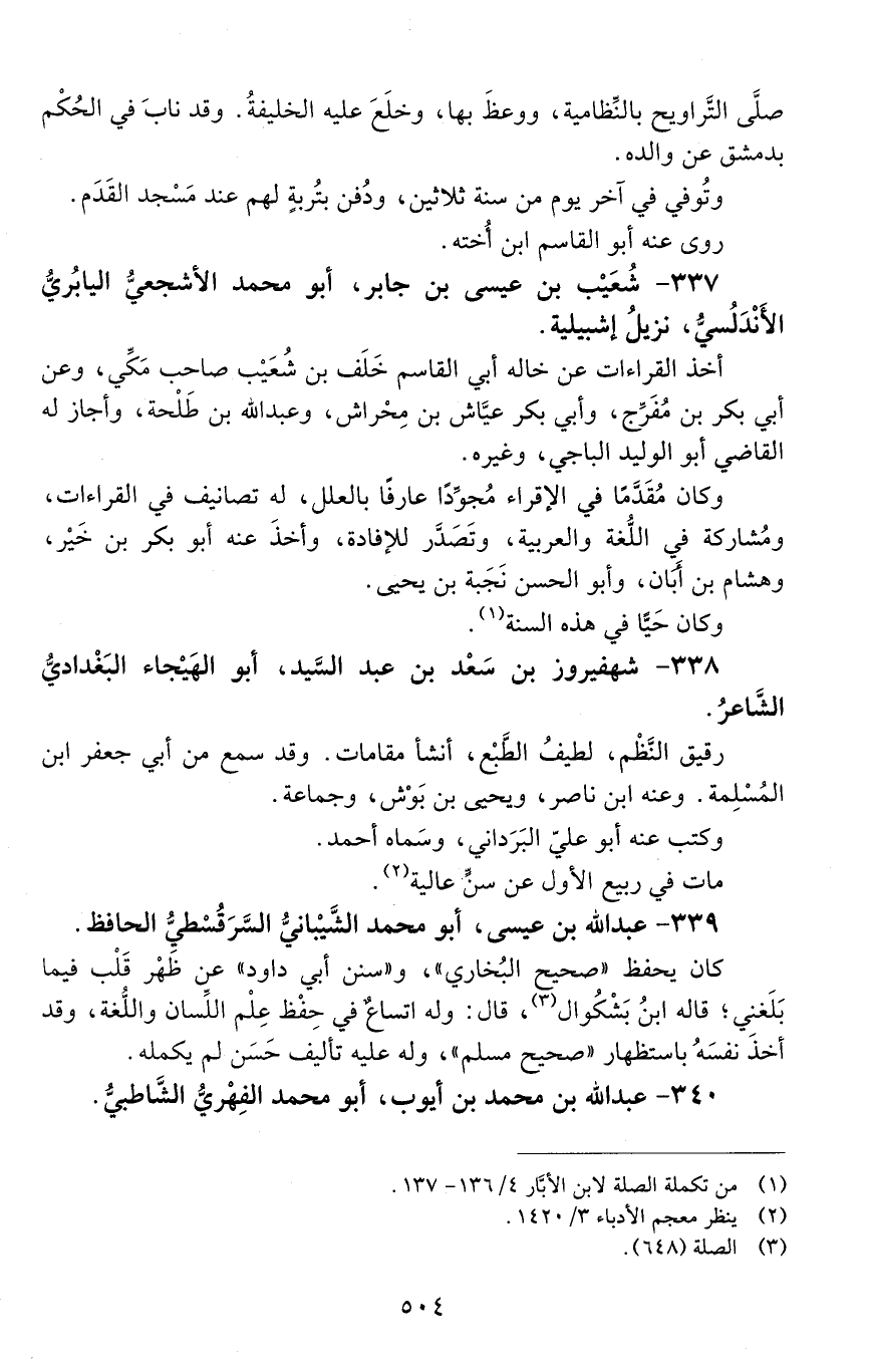 340 - عبد الله بن محمد بن أيوب، أبو محمد الفهريُّ الشَّاطبيُّ. [المتوفى: 530 هـ]-[505]-