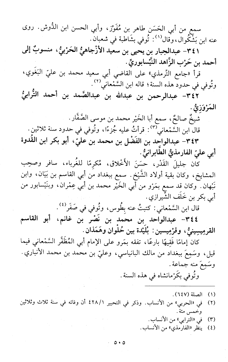 343 - عبد الواحد بن الفضل بن محمد بن علي، أبو بكر ابن القدوة أبي علي الفارمذي الطابراني. [المتوفى: 530 هـ]