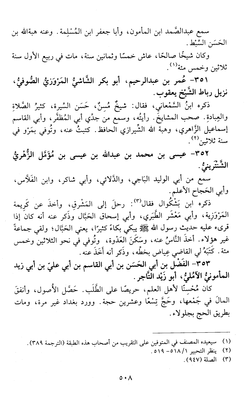 351 - عمر بن عبد الرحيم، أبو بكر الشّاشيّ، المَرْوَزِيّ الصُّوفيّ، [المتوفى: 530 هـ]