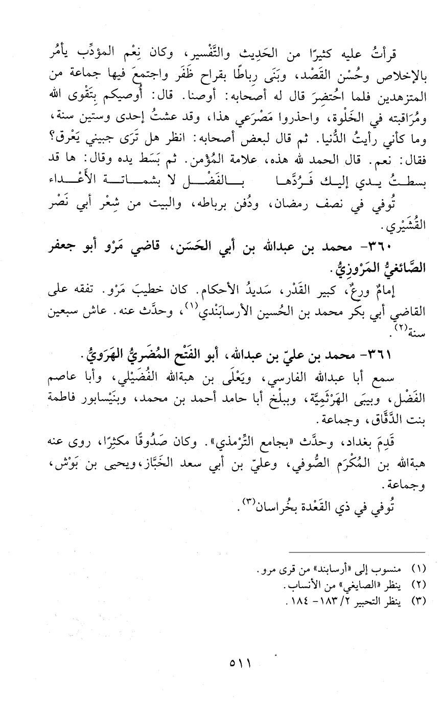 360 - محمد بن عبد الله بن أبي الحسن، قاضي مرو أبو جعفر الصَّائغيُّ المروزيُّ. [المتوفى: 530 هـ]