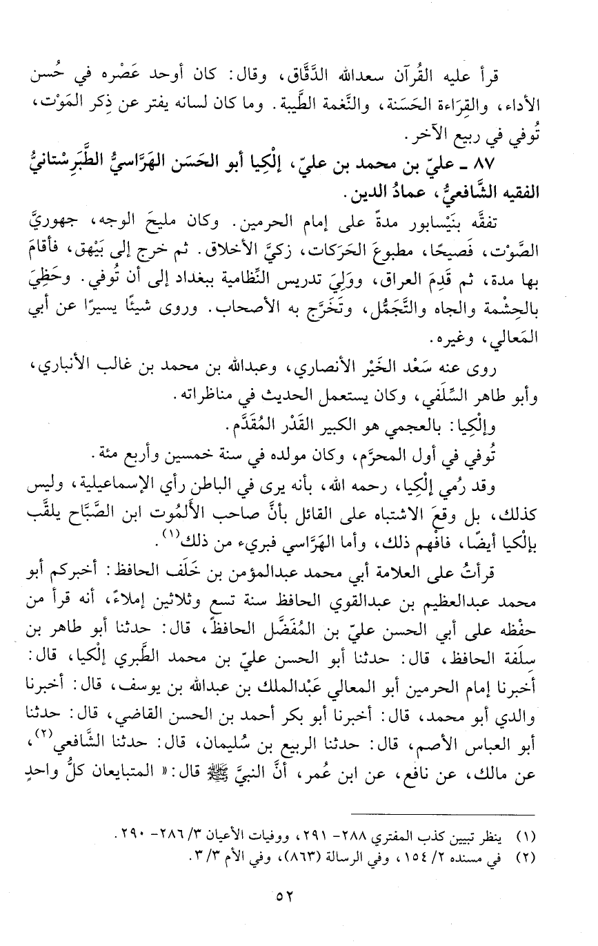 87 - علي بْن محمد بْن عليّ إلْكيا، أبو الحَسَن الهرّاسيّ، الطَّبَرِسْتانيّ، الفقيه الشّافعيّ، عماد الدين. [المتوفى: 504 هـ]