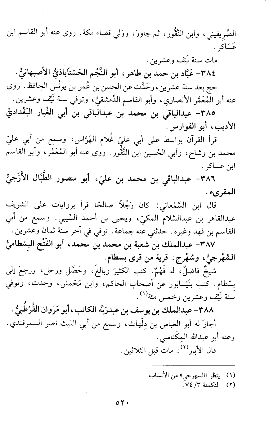 384 - عبَّاد بن حمد بن طاهر، أبو النَّجْم الحسناباذيُّ الأصبهانيُّ. [الوفاة: 521 - 530 هـ]