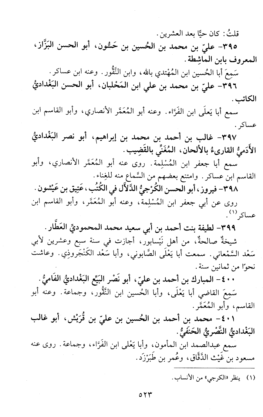 395 - عليّ بن محمد بن الحسين بن حسُّون، أبو الحسن البَّزَّاز، المعروف بابن الماشطة. [الوفاة: 521 - 530 هـ]