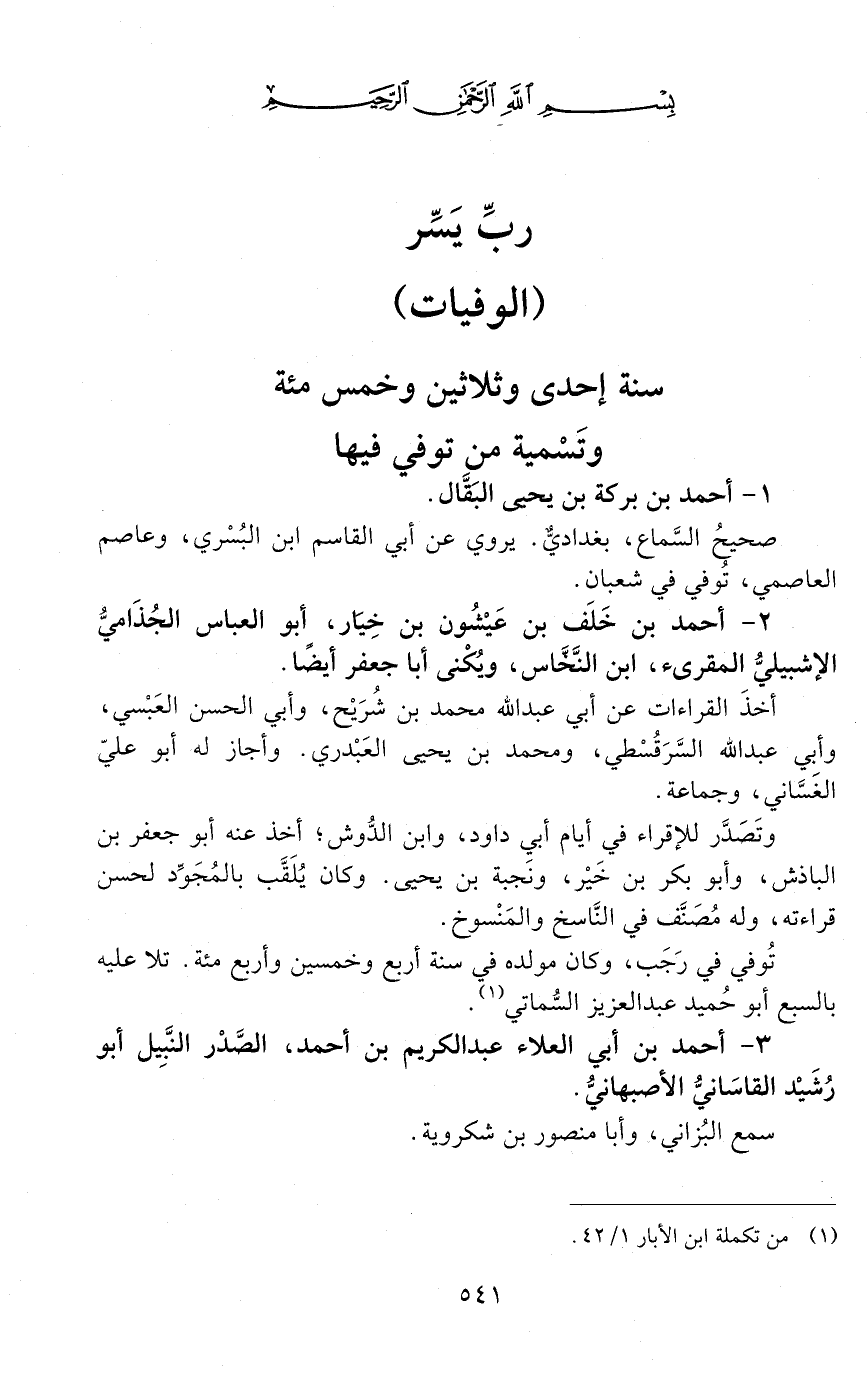 1 - أحمد بن بركة بن يحيى البقّال. [المتوفى: 531 هـ]