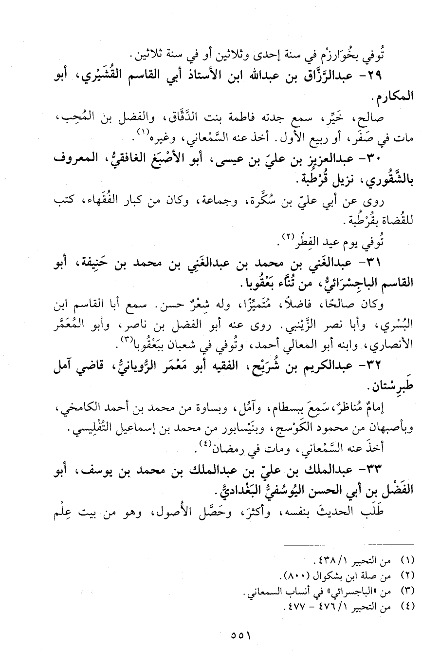 29 - عبد الرّزّاق بن عبد الله ابن الأستاذ أبي القاسم القُشَيْريّ، أبو المكارم. [المتوفى: 531 هـ]