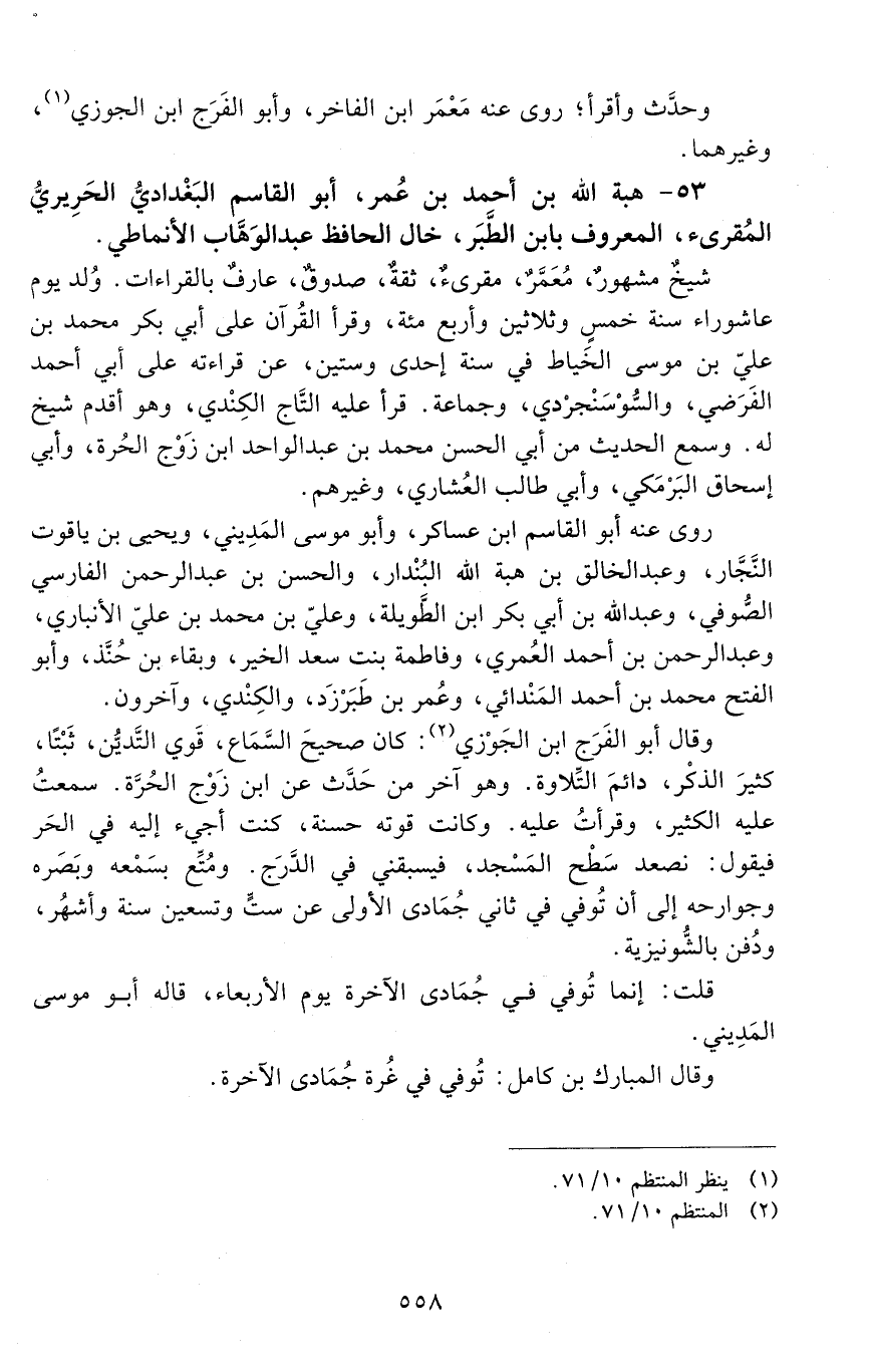 53 - هبة الله بن أحمد بن عمر، أبو القاسم البغدادي، الحريري، المقرئ، المعروف بابن الطبر، [المتوفى: 531 هـ]
