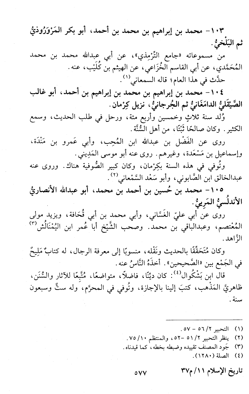 103 - مُحَمَّد بْن إِبْرَاهِيم بْن محمد بن أحمد، أبو بكر المروروذي، ثمّ البلْخيّ. [المتوفى: 532 هـ]