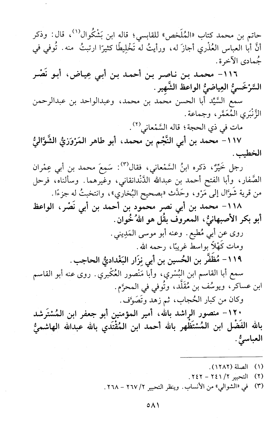 116 - محمد بن ناصر بن أحمد بن أبي عِياض، أبو نصر السَّرْخَسِيّ، العِياضيّ، الواعظ الشّهير. [المتوفى: 532 هـ]