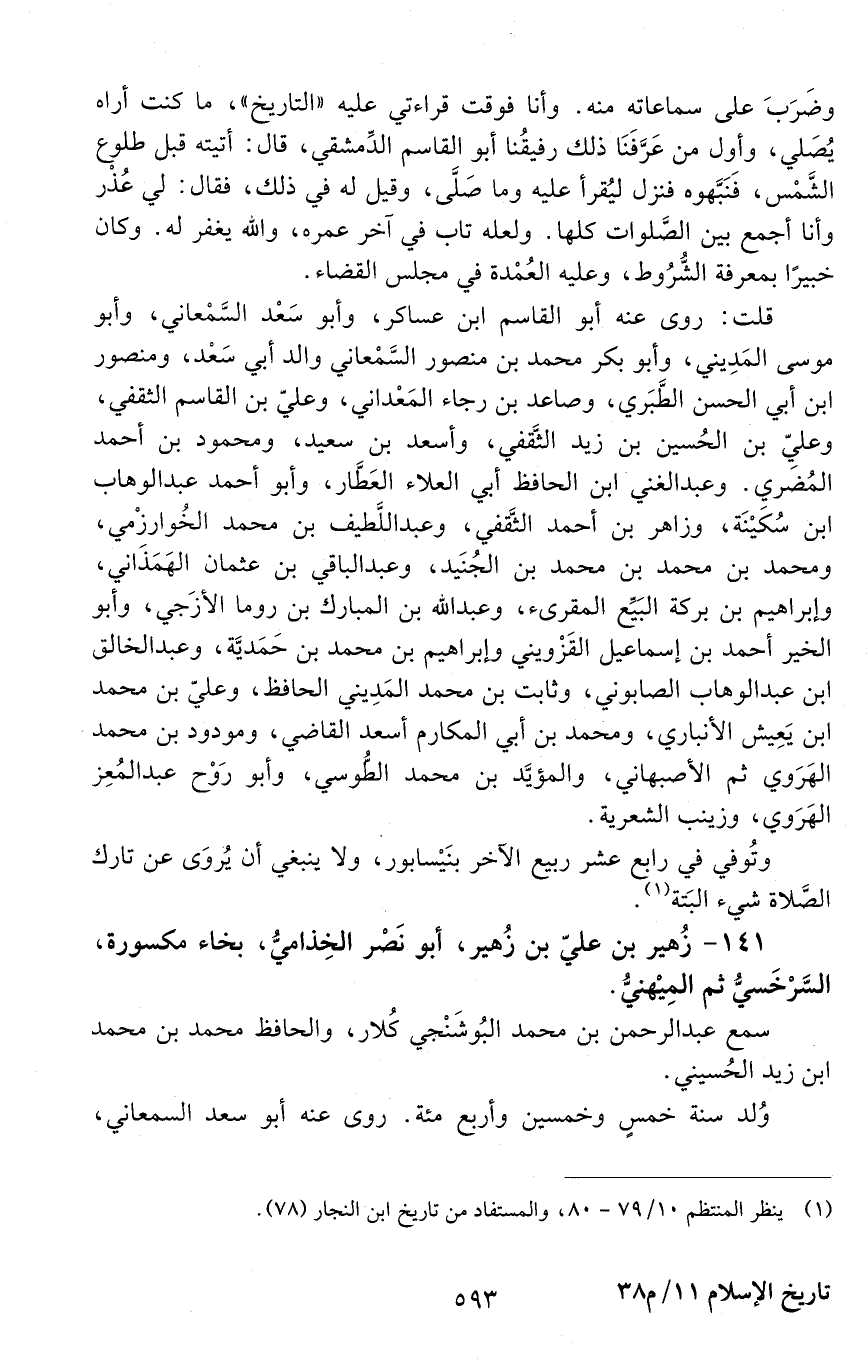 141 - زُهير بن عليّ بن زهير، أبو نصر الخذامي، بخاء مكسورة، السَّرْخَسيّ، ثمّ المِيهنيّ. [المتوفى: 533 هـ]