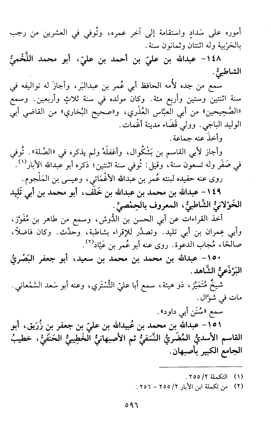 149 - عَبْدِ اللَّهِ بْنِ مُحَمَّدِ بْنِ عَبْدِ اللَّهِ بن خَلَف، أبو محمد بن أبي تليد الخَوْلانيّ، الشّاطبيّ، المعروف بالحمصيّ. [المتوفى: 533 هـ]