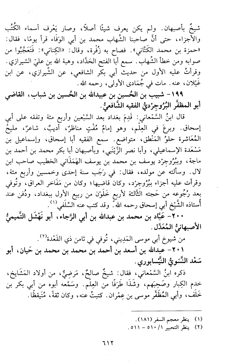 199 - شبيب بْن الحسين بْن عُبَيْد الله بْن الحسين بن شباب، القاضي، أبو المظفر البَرُوجِرْدِيّ، الفقيه، الشّافعيّ. [المتوفى: 534 هـ]