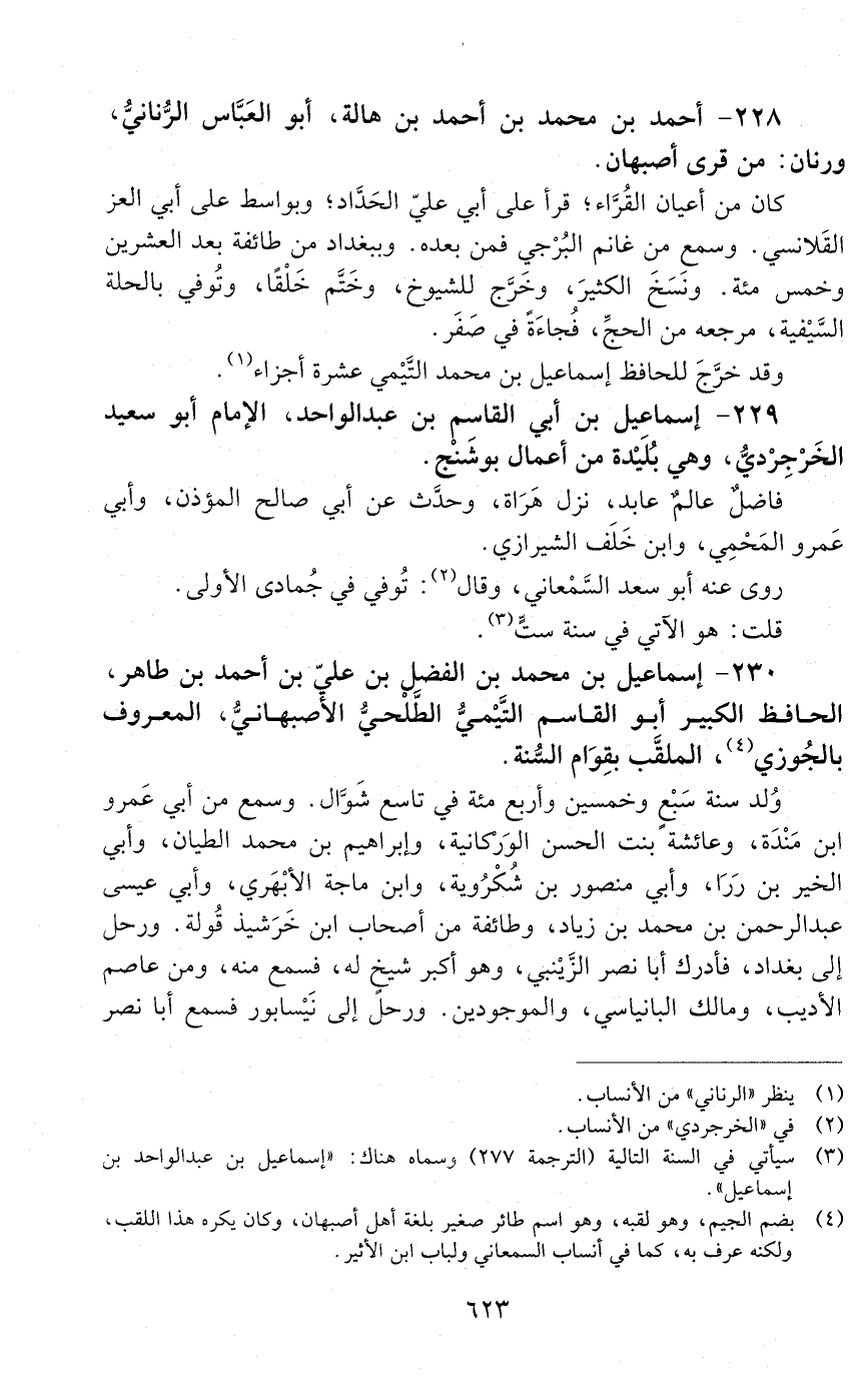 230 - إسماعيل بْن محمد بْن الفضل بْن عليّ بْن أحمد بن طاهر، الحافظ الكبير، أبو القاسم التَّيْميّ، الطَّلْحيّ، الأصبهاني، المعروف بالجوزي، الملقب بقوام السُّنة. [المتوفى: 535 هـ]