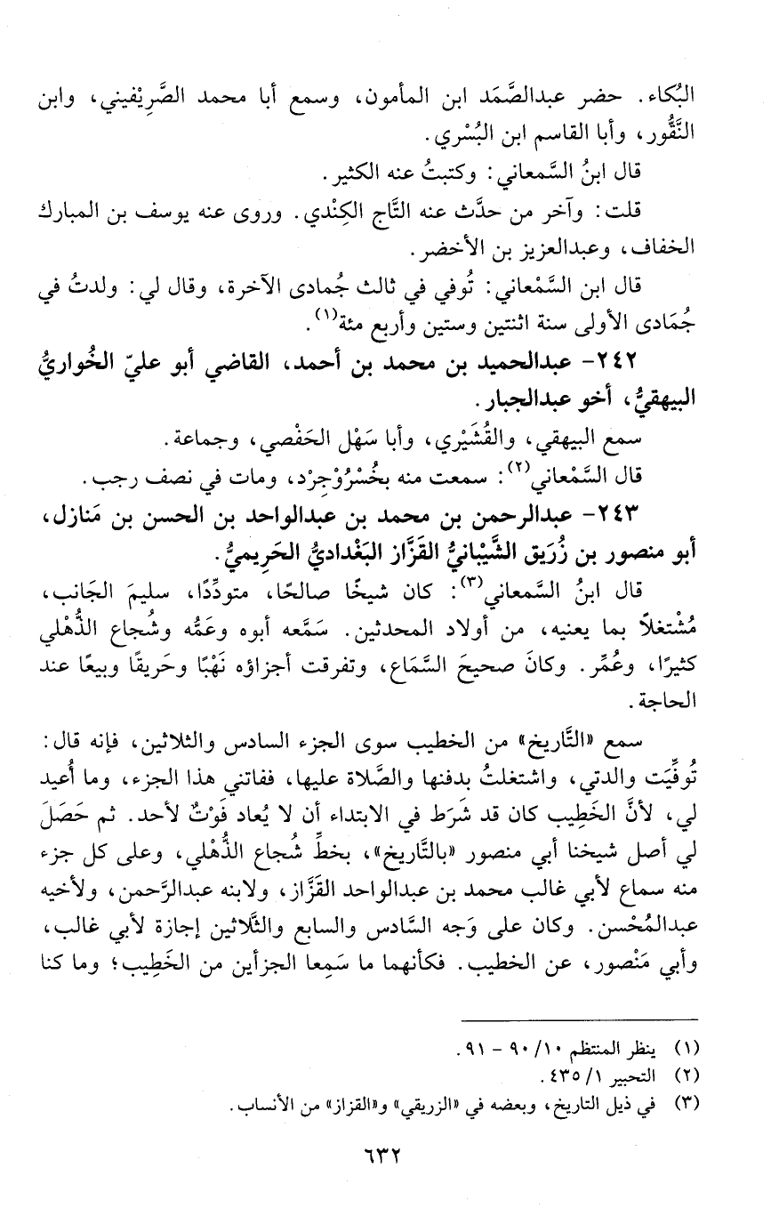 243 - عبد الرحمن بن محمد بن عبد الواحد بن الحسن بن منازل، أبو منصور بن زُرَيق الشَّيْبانيّ، القزّاز، البغداديّ، الحَرِيميّ. [المتوفى: 535 هـ]