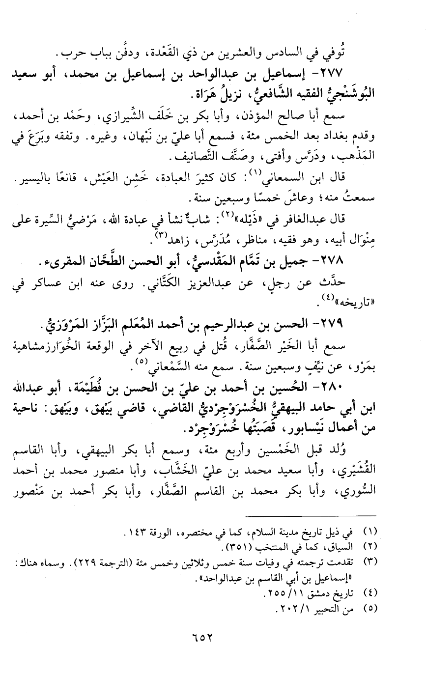277 - إسماعيل بن عبد الواحد بن إسماعيل بن محمد، أبو سعيد البُوشَنْجيّ، الفقيه الشّافعيّ، [المتوفى: 536 هـ]