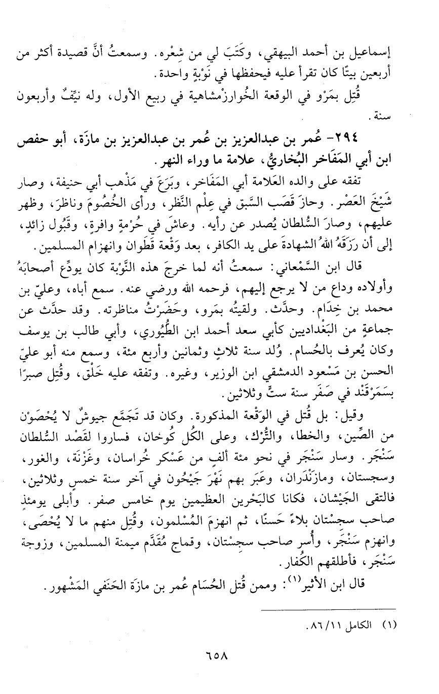 294 - عمر بن عبد العزيز بن عمر بن عبد العزيز بن مازَة، أبو حفص بن أبي المَفَاخر البخاريّ، [المتوفى: 536 هـ]