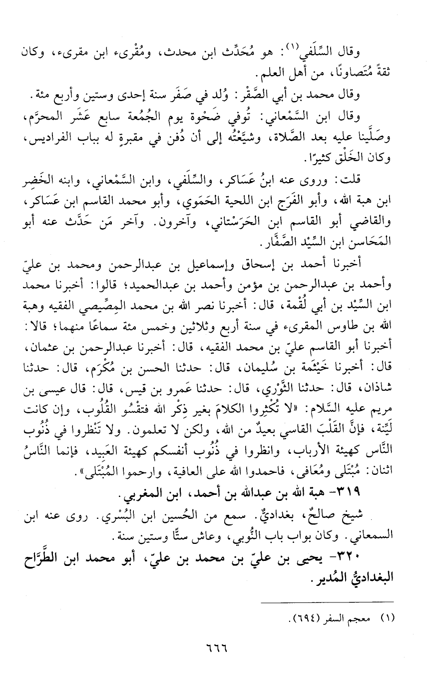 320 - يحيى بْن علي بْن مُحَمَّد بْن علي، أبو محمد ابن الطراح، البغدادي، المدير. [المتوفى: 536 هـ]-[667]-