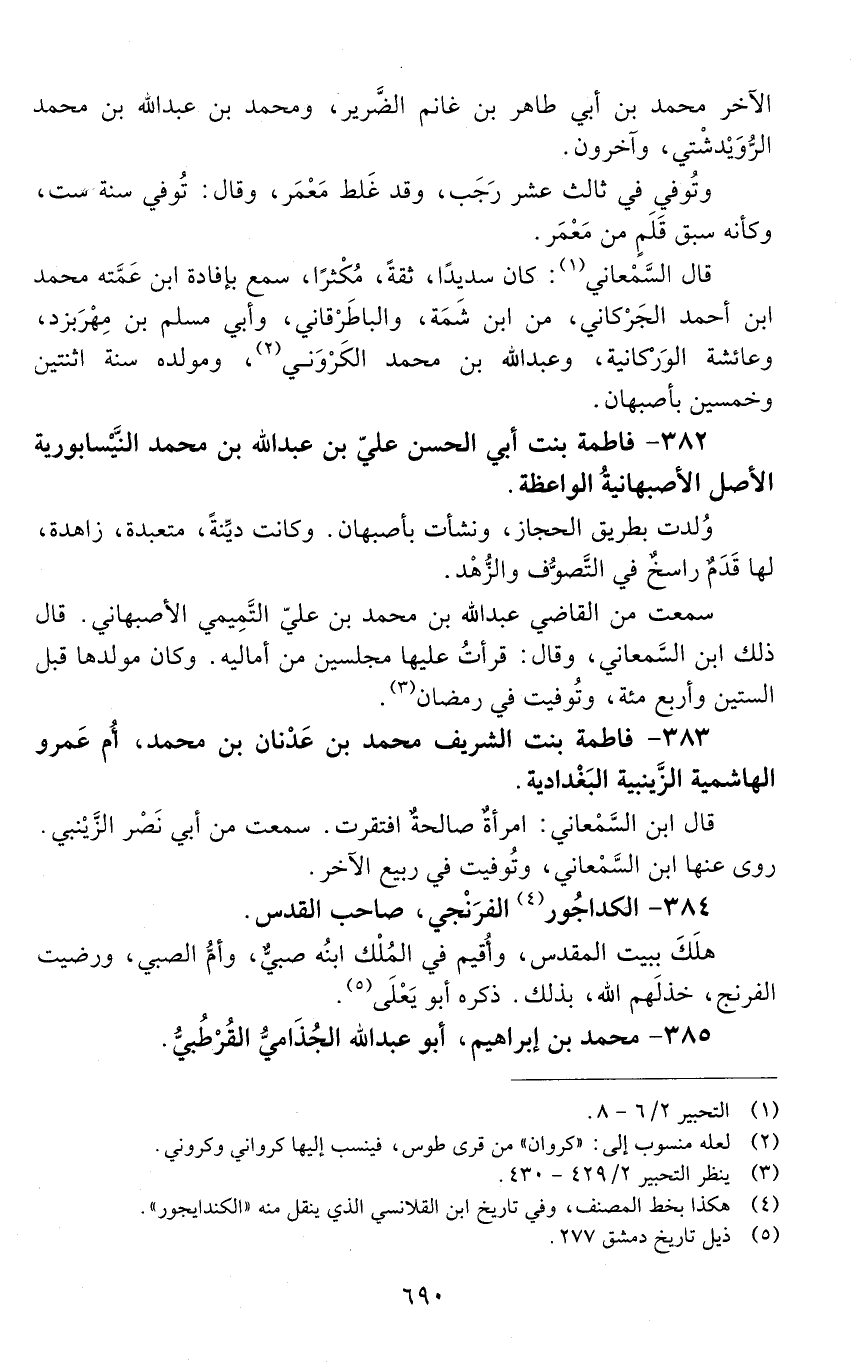 382 - فاطمة بنت أبي الحَسَن عليّ بن عبد الله بن محمد، النَّيْسابورية الأصل، الأصبهانيَّة، الواعظة. [المتوفى: 538 هـ]
