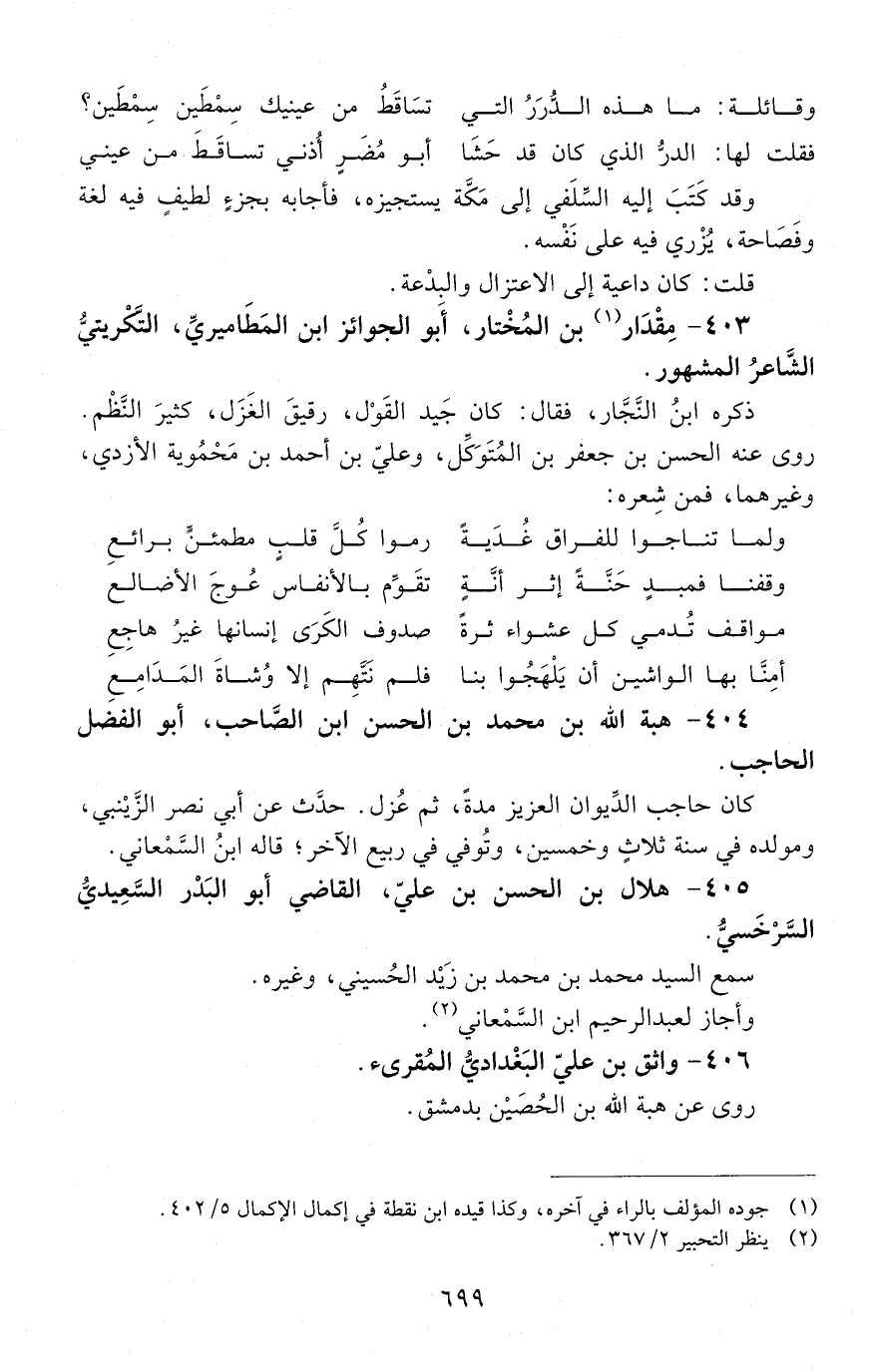 403 - مقدار بن المختار، أبو الجوائز بن المطاميريّ، التِّكْرِيتيّ، الشّاعر المشهور. [المتوفى: 538 هـ]