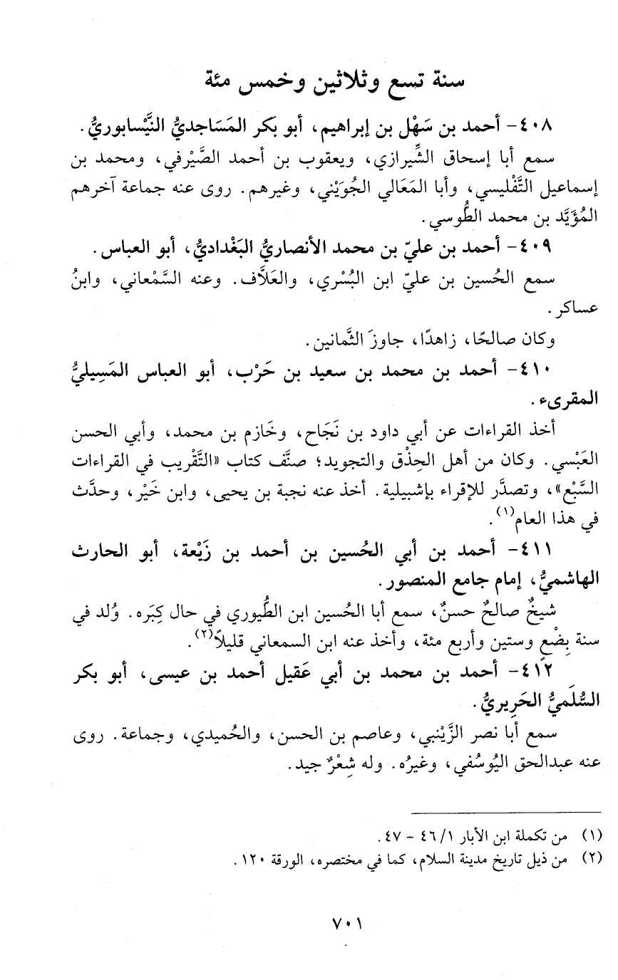 408 - أحمد بن سهل بن إبراهيم، أبو بكر المساجديّ، النَّيْسابوريّ. [المتوفى: 539 هـ]