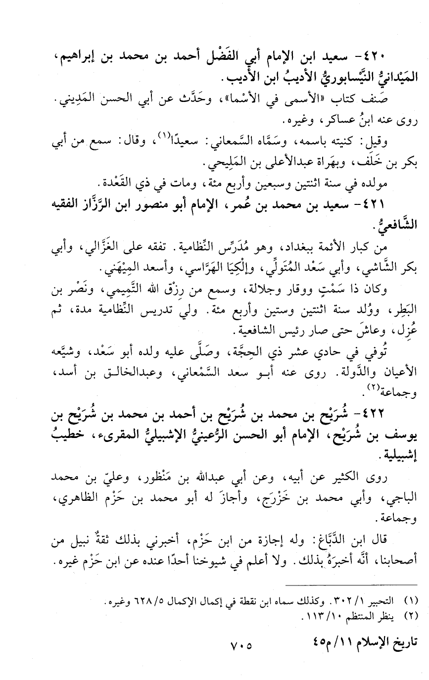 421 - سَعِيد بْن مُحَمَّد بْن عمر، الإمام، أبو منصور ابن الرّزّاز، الفقيه الشّافعيّ. [المتوفى: 539 هـ]