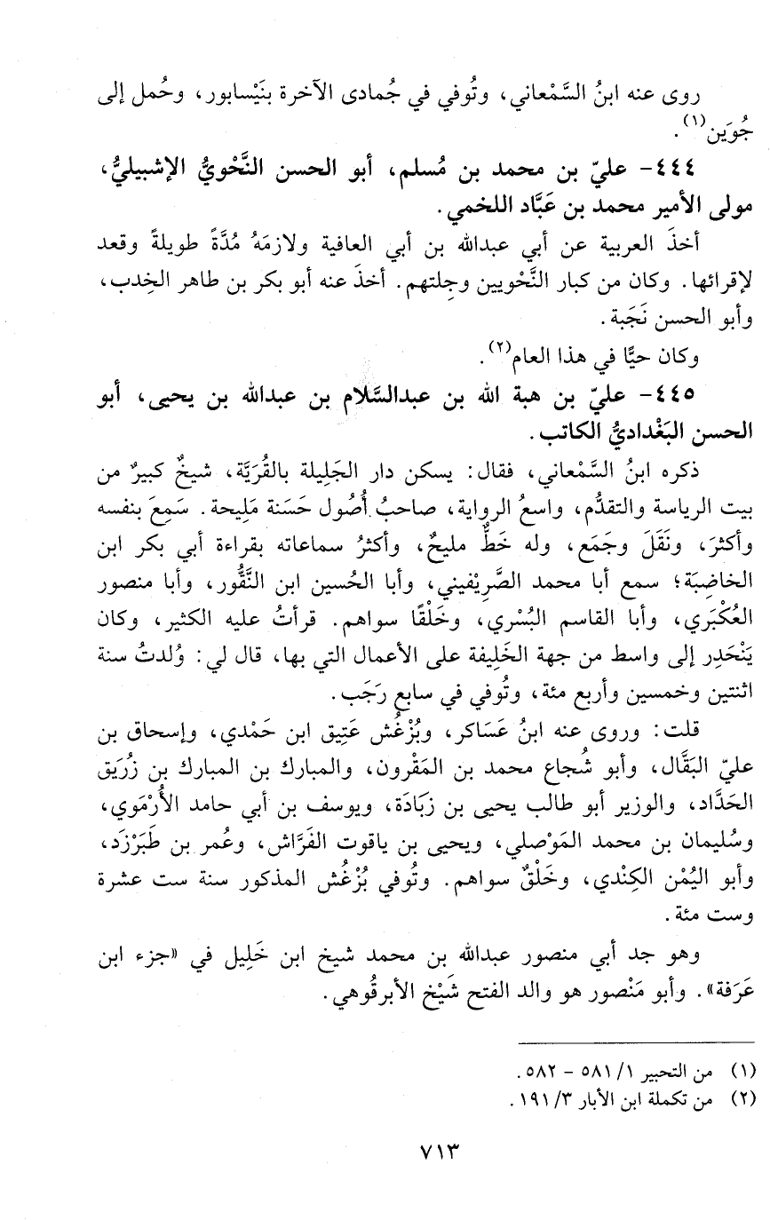 445 - عليّ بْن هبة اللَّه بْن عبد السّلام بن عبد الله بن يحيى، أبو الحَسَن البغداديّ، الكاتب. [المتوفى: 539 هـ]