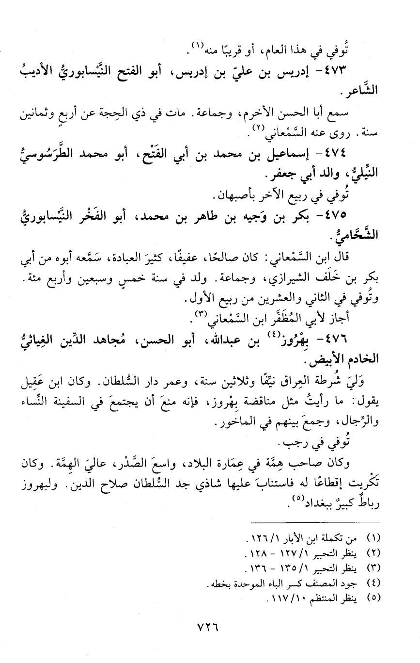 475 - بكر بن وجيه بن طاهر بن محمد، أبو الفخر النَّيْسابوريّ، الشّحّاميّ. [المتوفى: 540 هـ]