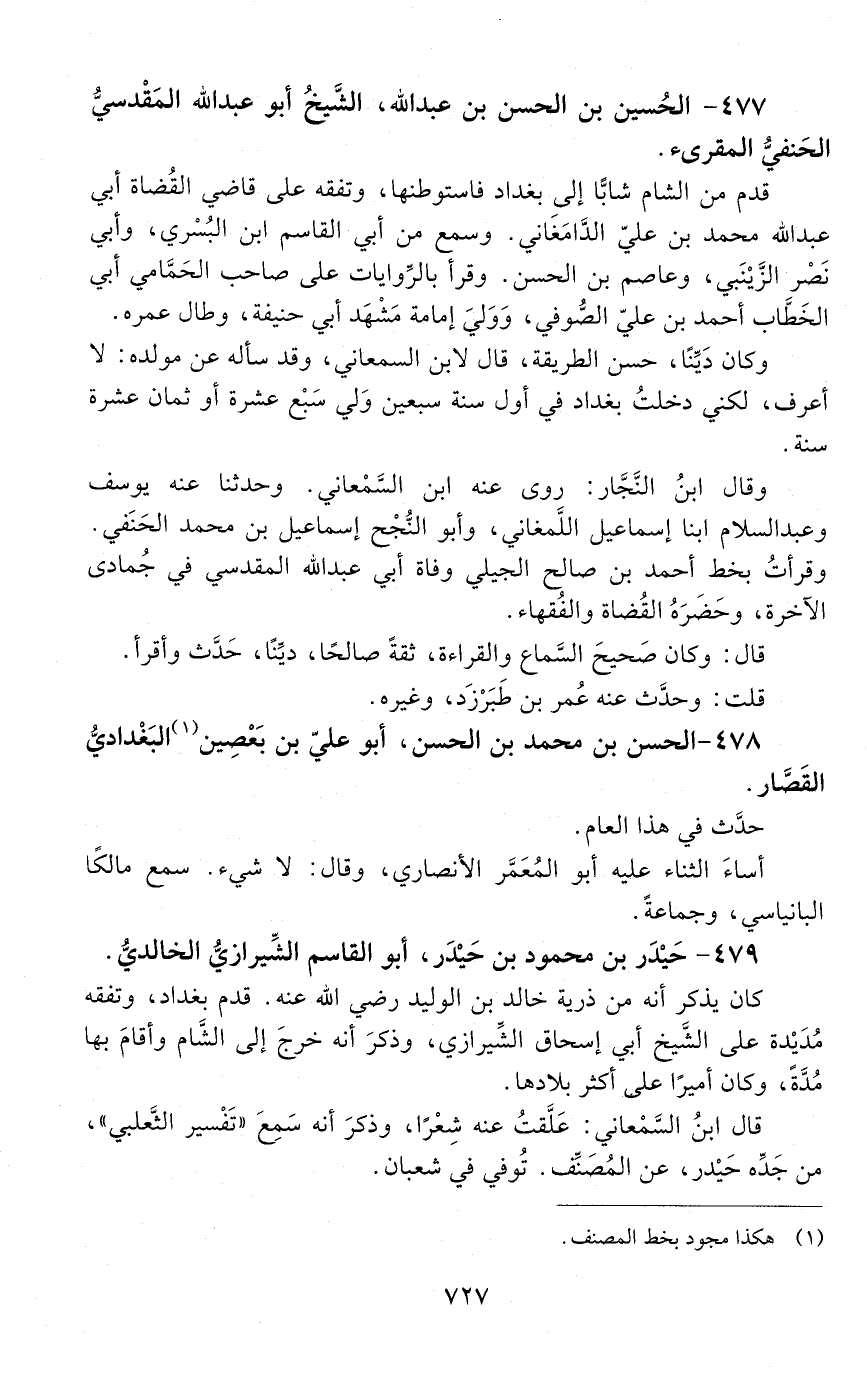 477 - الحسين بن الحَسَن بن عبد الله، الشَيخ أبو عبد الله المقدسيّ، الحنفيّ، المقرئ. [المتوفى: 540 هـ]