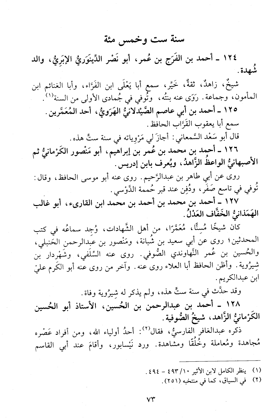128 - أحمد بْن عَبْد الرَّحْمَن بْن الحُسَيْن، الأستاذ أبو الحسين الكرماني، الزاهد، [المتوفى: 506 هـ]