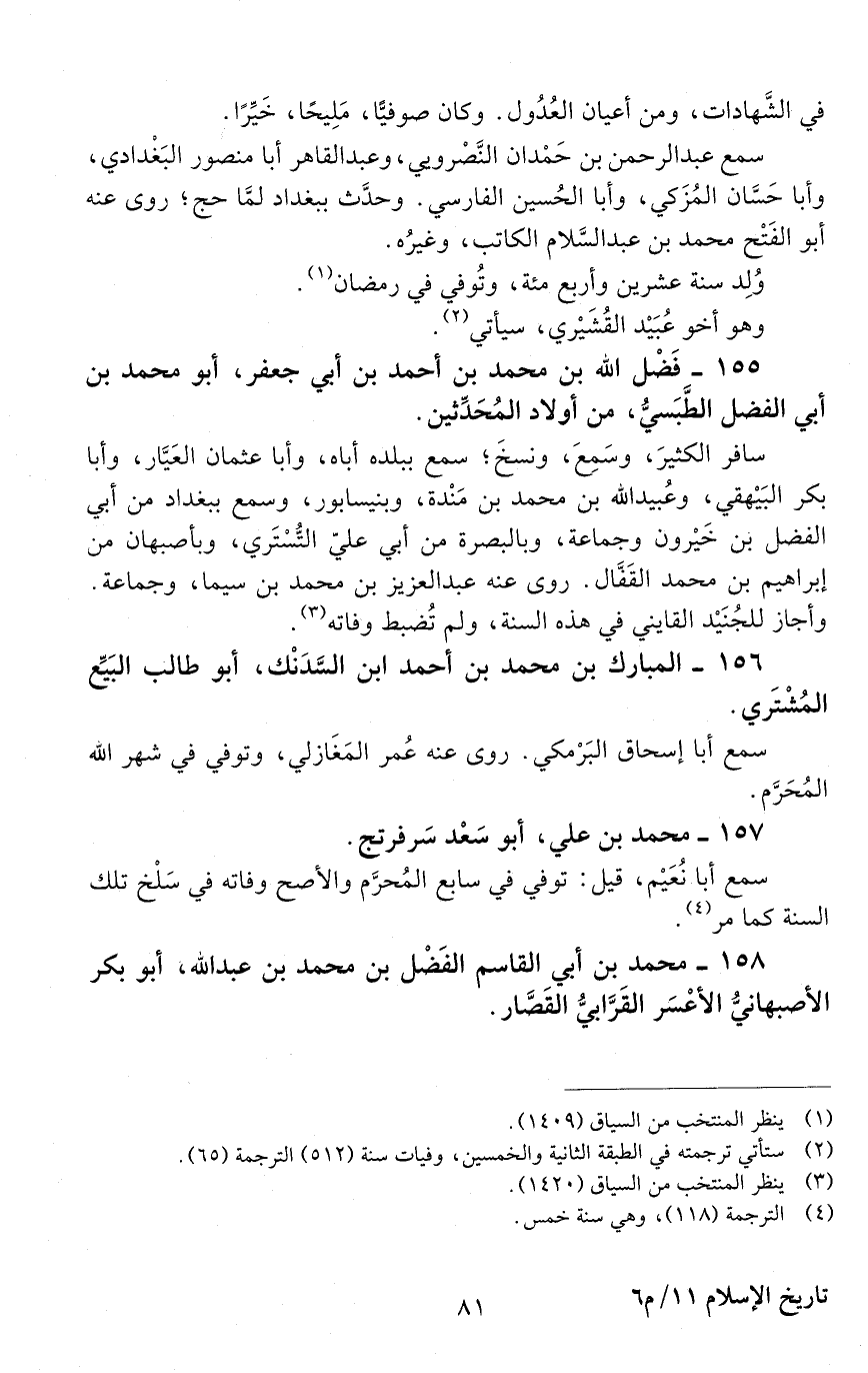 155 - فضل الله بْن محمد بْن أحمد بْن أَبِي جعفر، أبو محمد بْن أَبِي الْفَضْلُ الطَّبَسيّ، [المتوفى: 506 هـ]